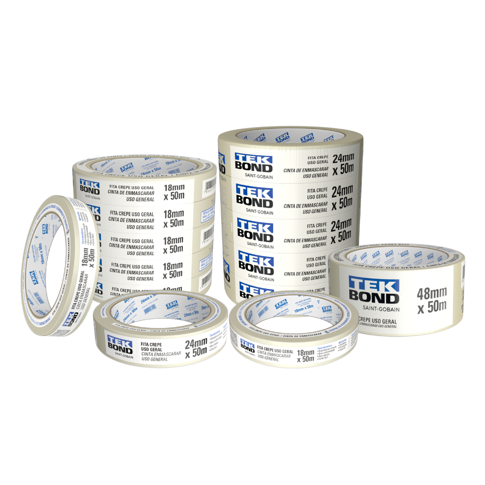 Na hora de pintar ambientes, use a Fita Crepe Tekbond para proteger rodapés, janelas, tomadas, sancas, teto, portas, objetos difíceis de remover etc.